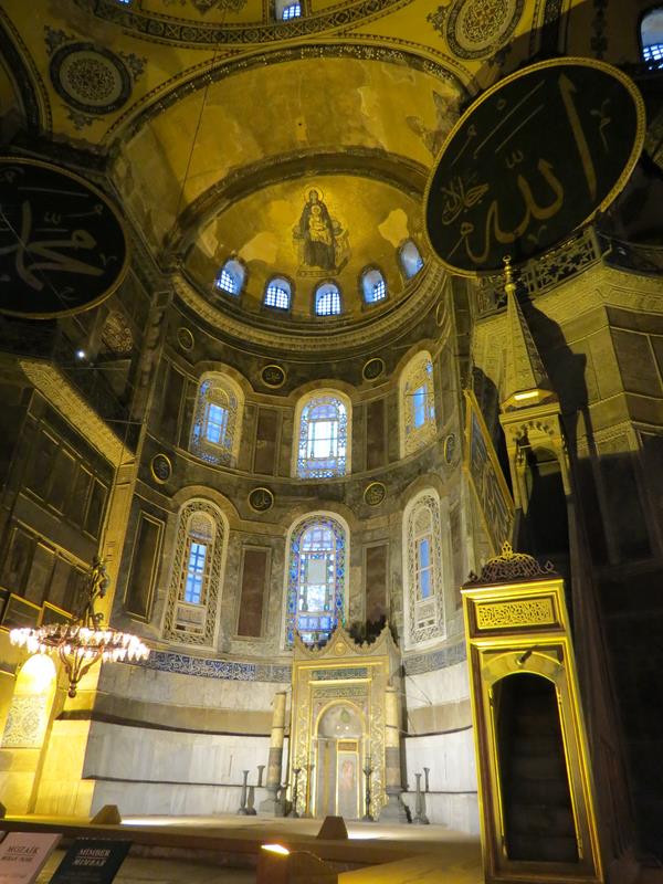 La Basilique Sainte Sophie L'empereur Justinien qui décida de l'ériger au 6ème siècle, souhaitait réaliser le plus grand monument de la chrétienté au monde. Ce n'est que 1000 ans plus tard qu'elle perdit son titre glorieux avec l'édification de la basilique St Pierre de Rome en 1626 ! Toutefois lors de la prise d'Istanbul par les Ottomans, toutes les traces de chrétienté furent masquées. Elle servit de mosquée jusqu'en 1935, jusqu'à ce que l'Ataturk la transforme en musée et fasse renaître les mosaïques et autres symboles chrétiens encore présents. Un véritable bijou !!!