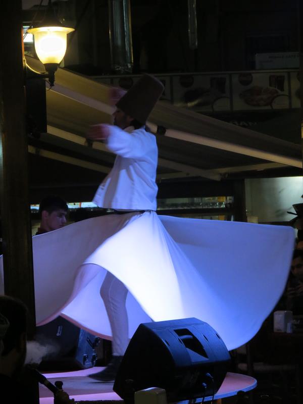 Derviche tourneur (ou Mevlevi) dansant pour les touristes. Mais à l'origine il s'agit en réalité d'un religieux musulman qui utilise la danse (le serna) pour communier avec Dieu.