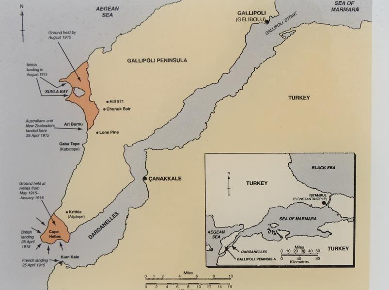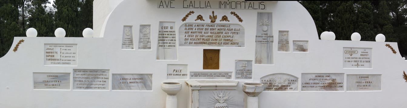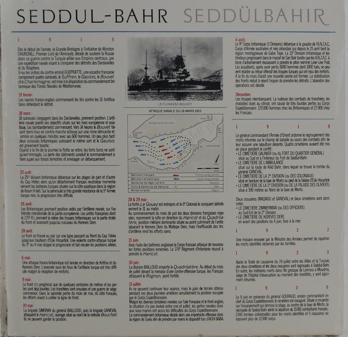 En avril 1915, les marines britannique et française décident d'attaquer Istanbul, alliée des Allemands. L'accès se fera par le détroit des Dardanelles, un goulot de 60 km de long. L'endroit est totalement miné et l'artillerie ottomane très efficace. L'échec des alliés est cuisant. Nous nous sommes intéressés à cette bataille car Sabine avait un "grand oncle" qui était Zouave et affecté au 1er Régiment de Marche d'Afrique, c'est à dire le 1er RMA . Il a débarqué le 26 mai 1915 à Seddul Bahr. Il est alors aspirant et âgé de 18 ans. Il est monté au Fortin Le Gouetz le 3 juin et a pris position dans une tranchée dite "Manou" où les parapets étaient constitués de sacs de sables et de... cadavres. Le 6 juin l'ordre a été donné de se replier et c'est alors qu'il a été grièvement blessé d'une balle lui ayant traversé la cuisse droite. Il finira sur le bateau hôpital "Tchad" qui quitta la zone le 9 juin. Il fut plus chanceux que les 14000 autres français enterrés sur la péninsule de Galipoli, parmi les 160000 morts que compta cette guerre.
