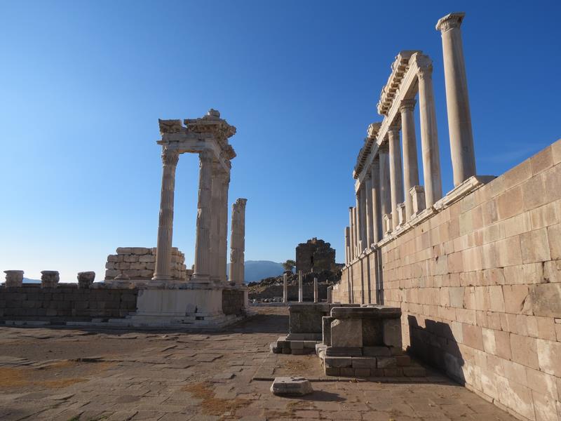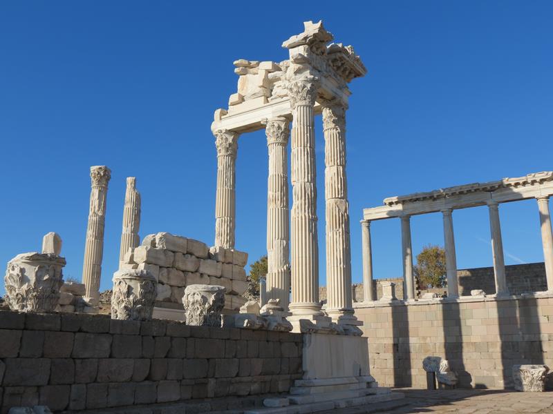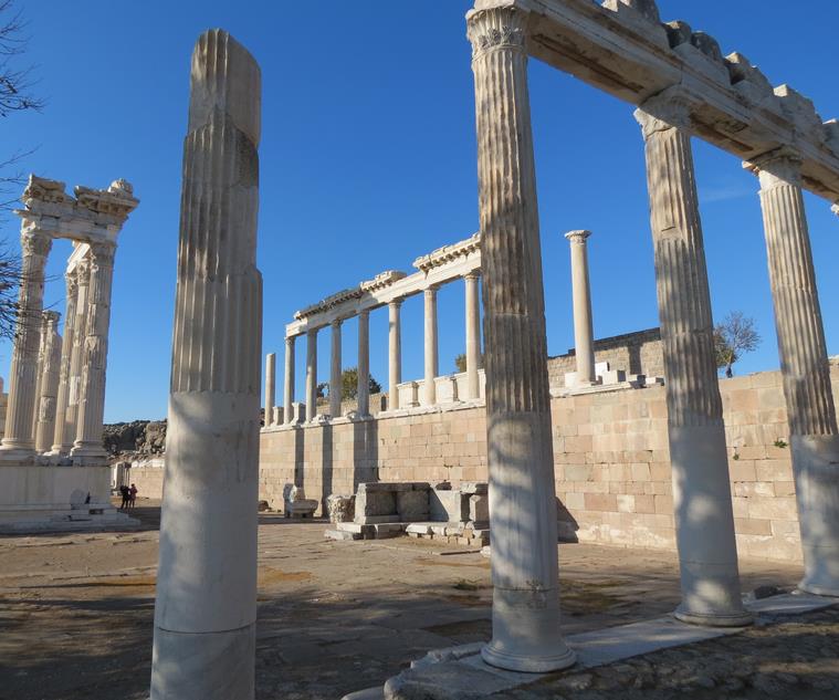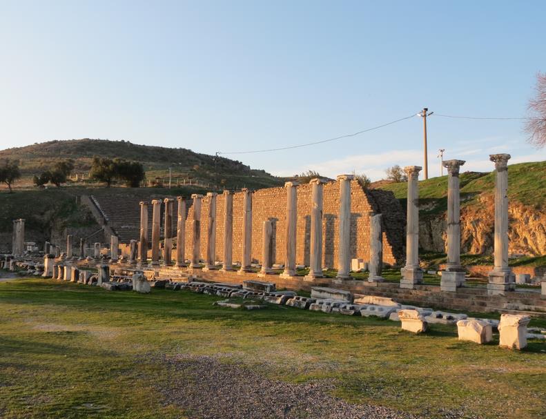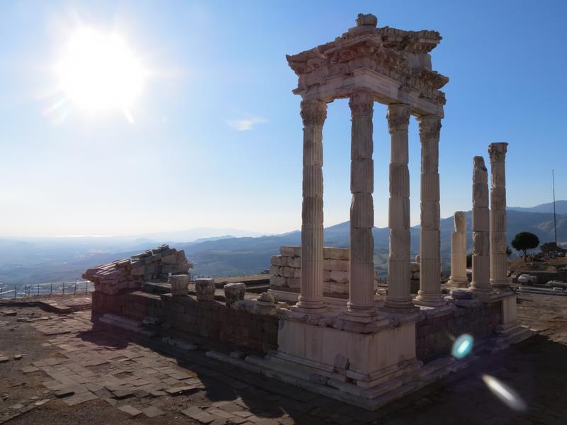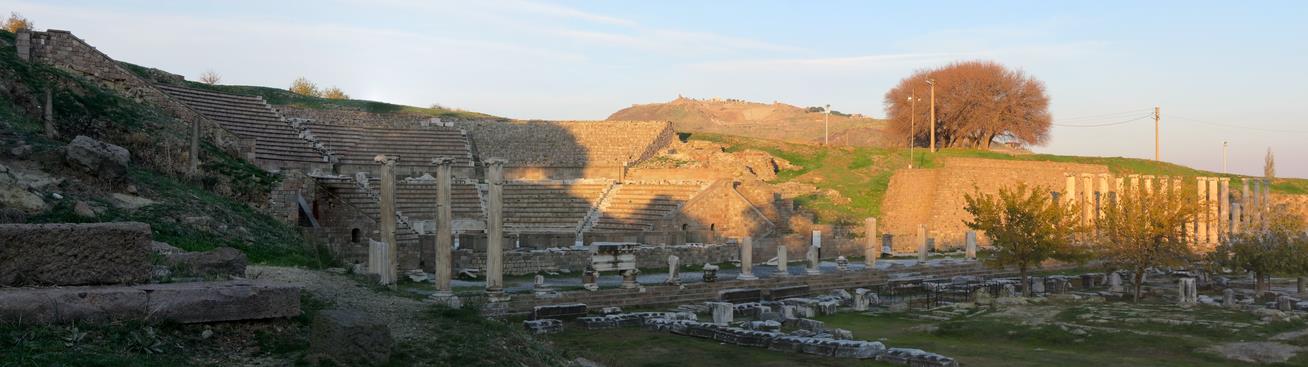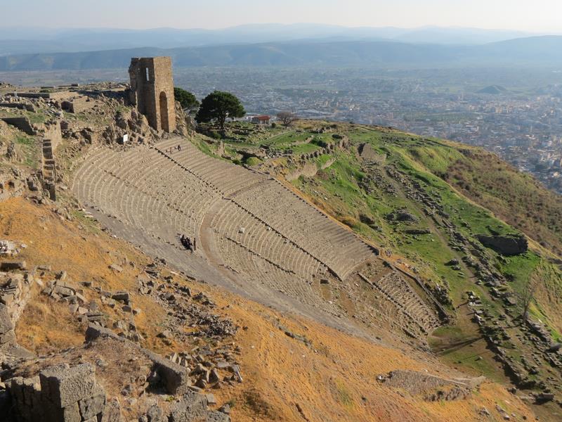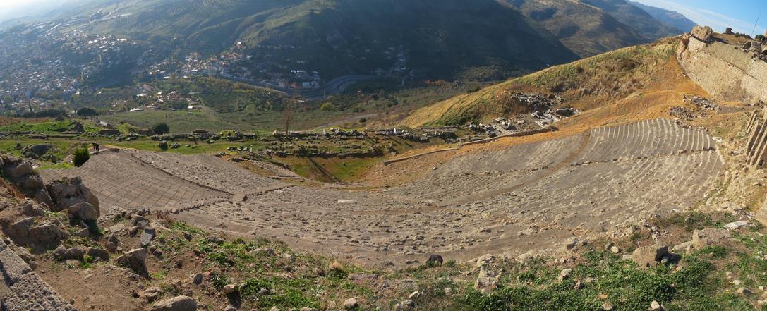 Pergame (ou Bergama) est une agréable bourgade qui possède 2 sites archéologiques remarquables : L'Acropole qui s'étage sur un piton rocheux haut de 275 m et embrasse la vallée et la vieille ville, et l'Asclépion qui se trouve en retrait dans la plaine et qui était le premier centre thérapeutique dédié à Asclépios (Esculape pour les romains) la divinité grecque de la médecine. Et dans la mythologie, Asclépios pouvait prendre la forme animale d'un serpent. D'où le symbole du serpent pour les professions médicales.
