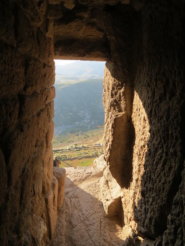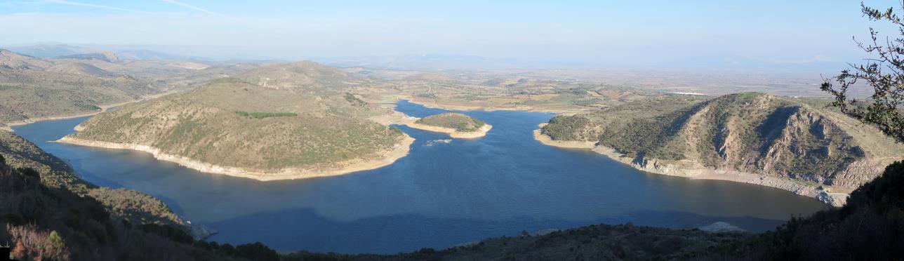 On aperçoit en contrebas de l'Acropole un lac artificiel servant à l'irrigation des cultures