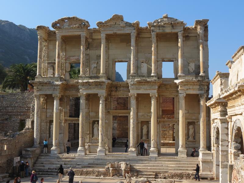 La bibliotèque fondée en hommage au gouverneur romain Celsius par son fils, et dont la splendide façade possède 4 statues emblématiques des qualités de Celsius : Fortune, Sagesse, Savoir et Vertu.