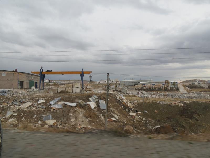 Nous découvrons sur la route d'Ankara des carrières de marbres et les entreprises de taille de marbre se succèdent les unes après les autres sur des centaines de kilomètres. C'est un spectacle assez étrange